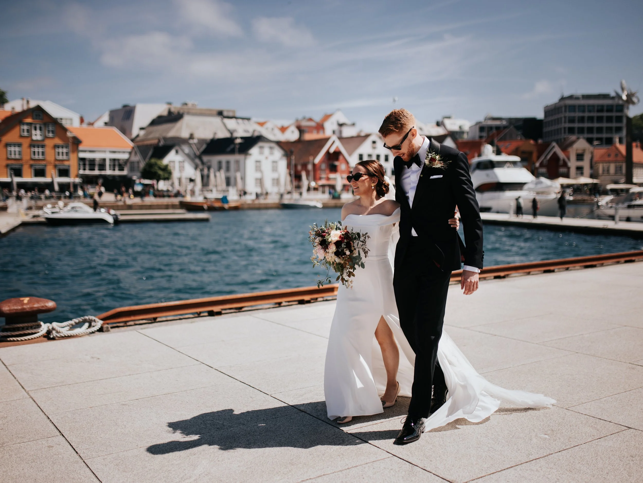 Bryllupsbilder før vielse i St Petri kirke i Stavanger, og en fantastisk fest i maskinhuset på Solastrandengård.